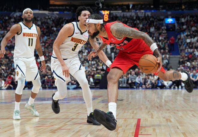 中场休息回来,约基奇、布劳恩与穆雷等主力继续登场,掘金攻防压制猛龙逐步扩大76-62领先优势,并在第三节前5分钟保持80-64领先16分优势。猛龙在巴雷特与马穆凯拉什维利内外开花引领下,回敬一波22-7攻势追到仅差1分,掘金冲击内线打出7-2攻势,三节结束掘金94-88领先猛龙。前三节比赛,约基奇17+6+5引领掘金4人得分上双,英格拉姆与巴雷特均19分引领猛龙3人得分上双。