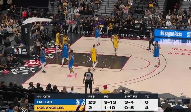 一个是湖人的替补席阵容一塌糊涂,你要知道末节全队18中3、三分9中0仅得到8分,被独行侠轰出37-8大胜27分,这样的数据直接把人给看傻了。大家都知道湖人的角色球员不怎么样,特别是替补席的实力。再看看这场比赛的二三阵,摆在球场上就和送分一样,不仅进攻端弱,防守端也弱,真的没法看了。