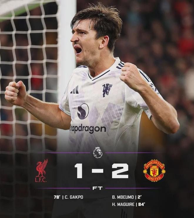 曼联客场2-1战胜利物浦,这是曼联自2016年以来第一次在安菲尔德击败利物浦!