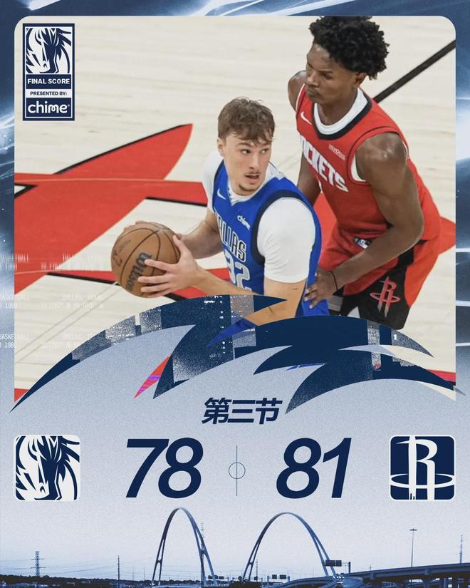 弗拉格第三节没得分,加福德没有大碍,第四节重新登场。两队频频失误,末节陷入混战。杜兰特两记三分进账,华盛顿反击隔扣2+1,最后4分钟独行侠追平了!独行侠不让杜兰特轻易接球,申京接管火箭进攻,最后1分半领先3分。