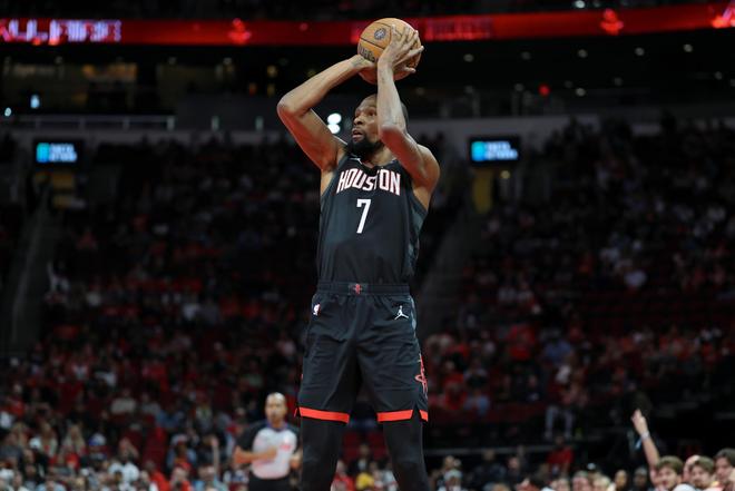 首先是37岁49天的杜兰特连续两场轰下30+得分,成为火箭队史交出该表现最老球员,前一场对阵开拓者杜兰特也有30分入账。