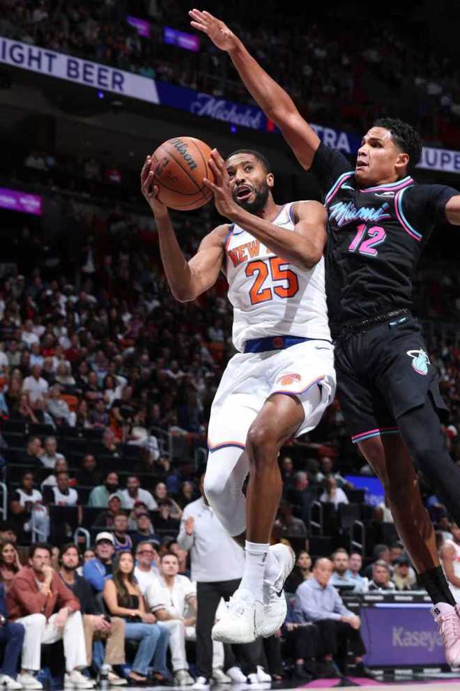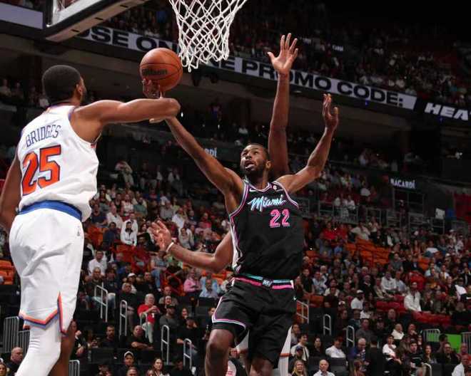 本赛季前两次交锋双方各取一胜,本场尼克斯缺少布伦森与阿奴诺比,热火缺少阿德巴约、希罗与罗齐尔。首节开局尼克斯10-4领先,热火一波11-0攻势反超比分,双方之后交替领先缠斗,首节结束尼克斯20-25落后热火。首节热火28中11,其中三分11中3,鲍威尔与维金斯均是5中1。尼克斯20中7,其中三分9中3,唐斯4中0得到0分5篮板,麦克布莱德8中4得到10分。