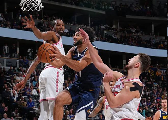 两支球队从一开始就打得难解难分,上半场交替领先。首节比赛一开始,火箭打出一波30-24的进攻,第二节,掘金的进攻开始回暖,球队轰下34分,只让火箭得到21分。上半场,掘金以58-51领先对手。