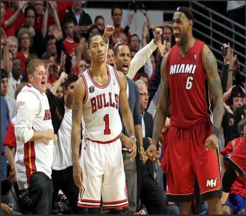 公牛隔年卷土重来,但罗斯重伤,公牛在首轮不敌76人,缔造黑八奇迹。2012-13赛季,公牛没有罗斯,在首轮4-3干掉篮网后,又遇到了热火。公牛这次依然先声夺人,以93-86攻陷迈阿密,但热火随即连胜4场晋级。G5,热火又赢了3分。詹姆斯场均23.6分7个篮板7.8次助攻2.2次抢断,两项命中率分别为43.8%和35.3%。