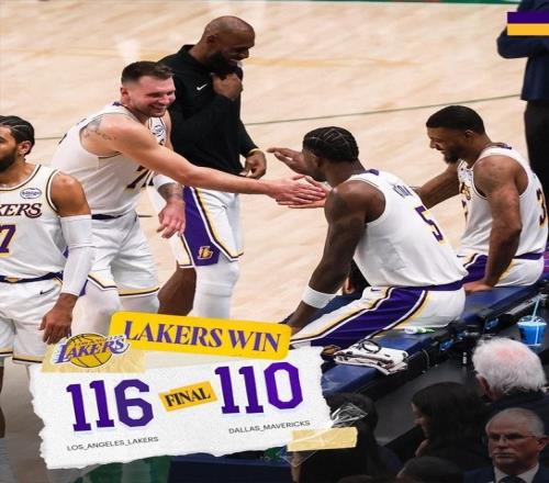 体育播报1月25日宣 NBA常规赛,湖人客场116-110战胜独行侠。